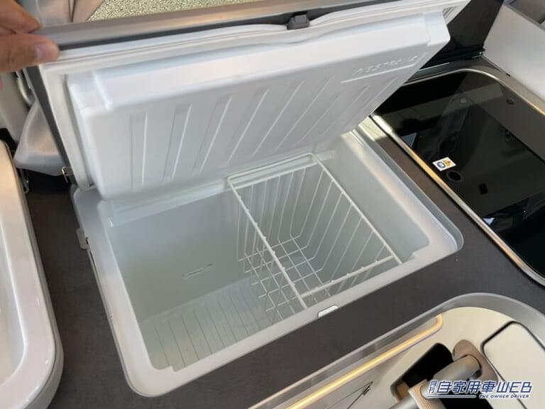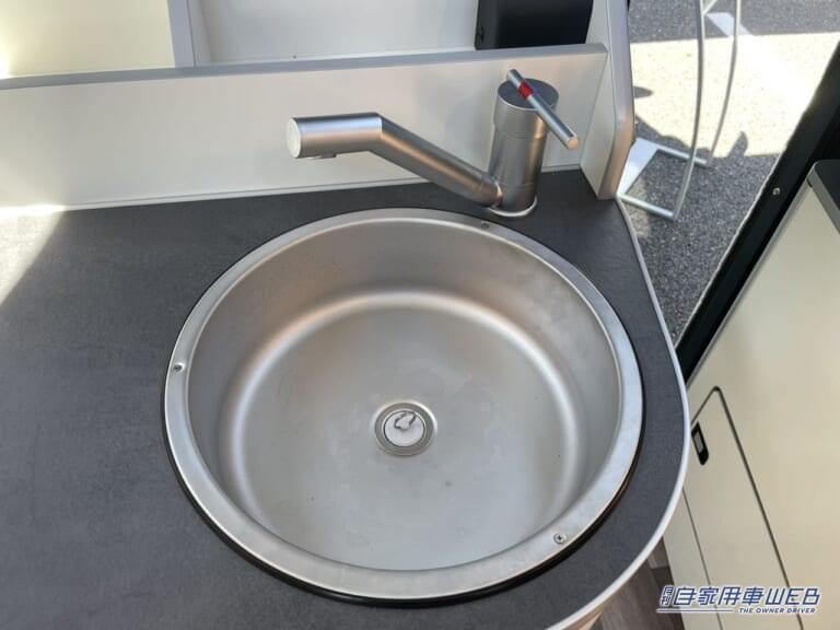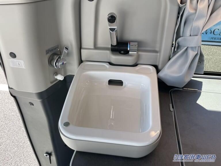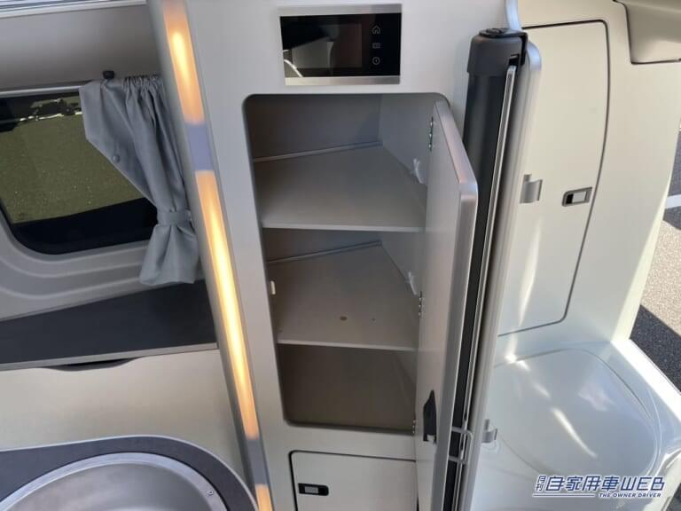 バックドア側には洗面台、その隣には冷蔵庫が埋め込まれている。
