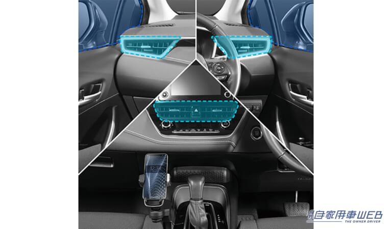 内装の雰囲気を損なわないよう、ホルダー部は各車種・グレードのインパネオーナメントのカラーに合わせた塗装仕上げ。(特別仕様車や限定車などを除く)