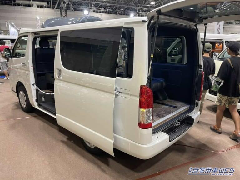 ベースの車両はトヨタのハイエース。カスタムの幅が広く、アウトドアを中心としたユーザーに、非常に人気の高い車だ。