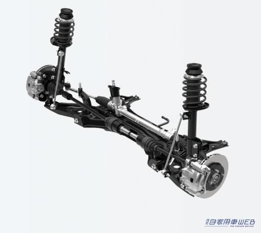 軽量で強度の高い高張力鋼板の使用範囲の拡大し、さらに構造用接着剤を採用することで軽くて剛性の高いボディーを実現。スタビライザーの仕様を変更することで、コーナリング時の車体の傾きを抑え、操縦安定性を向上させている。