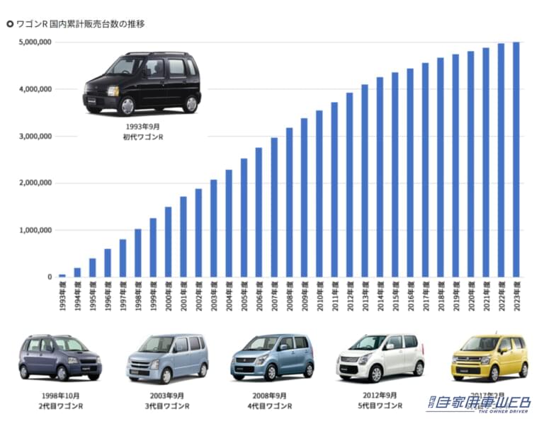 アルトに次いで2車種目の達成となった国内累計販売500万台