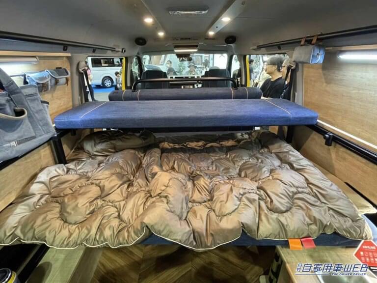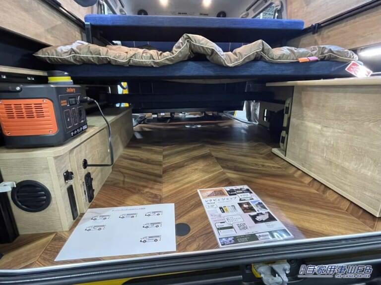 フラットスペースは2段になっており、上段は荷物などをおくことができるスペース、下段は広く就寝用のスペースとして使うことができる。フロアも広めに確保されており、大型の荷物や長いものはこちらに積載可能。