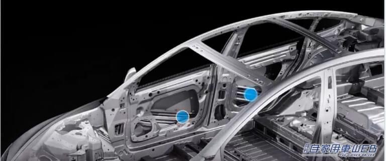 新型Model 3は、エクステリアやインテリアの変更だけでなく、ファーサイドエアバッグの追加や、サイドドアのインナーフレームの補強など、安全性性能も大幅にアップグレード。