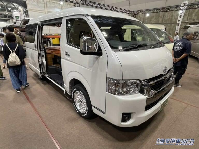 ベースの車両はトヨタのハイエース。カスタムの幅が広く、アウトドアを中心としたユーザーに、非常に人気の高い車だ。
