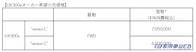 レクサスは、新型「UX300h」「UX300e」の国内仕様車を発表した。「UX300h」は2024年1月上旬頃、「UX300e」は1月下旬頃の発売を予定している。「UX300h」の価格は455万9000~565万7000円、「UX300e」の価格は650~705万円。