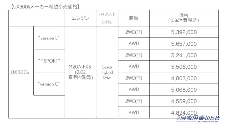 それに従いモデル名称を従来の「UX250h」から「UX300h」に変更された。