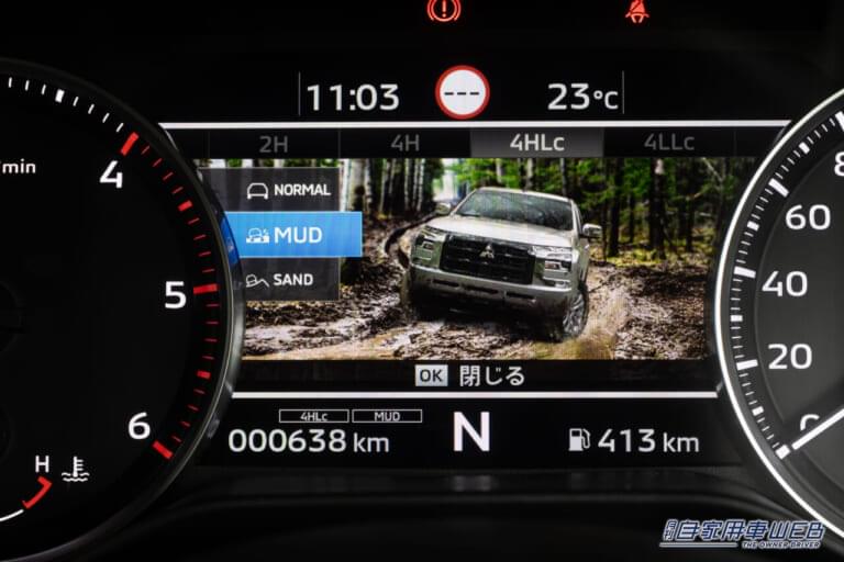 4WDシステムは、三菱自動車独自のSS4- Ⅱシステムを採用。4WDモードは後輪駆動の「2H」、フルタイム4WDの「4H」、センターデイファレンシャル直結の「4Hlc」、さらによりローギャの「4Llc」の4種類が選択可能。それぞれの4WDモードに対応する7つのドライブモードを搭載する。