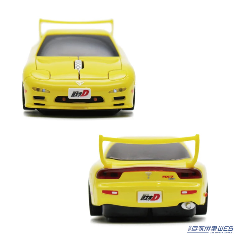 『頭文字D』に登場する高橋啓介のマツダRX-7(FD3S)を再現した黄色の光沢感のあるマウスのボディは、FDの流線形のフォルムを表現。ホイールやヘッドライトの造作など、細部のディティールまでこだわって作られている。