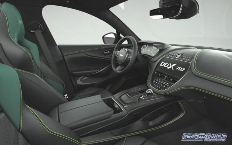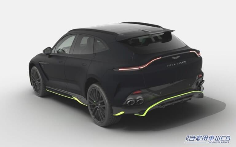 DBX707 Midnight Podium Editionには、Q by Aston Martinのフェンダーバッジが装着され、アストンマーティン・レーシング・ライムグリーンのブレーキキャリパーが23インチ・サテンブラックホイールに装着されている。