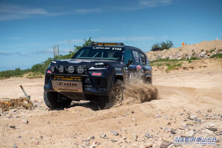 2023年のBAJA1000の全行程約2110kmを走り抜いた「LX600“OFFROAD”TEAM JAOS 2023ver.」も展示されている。