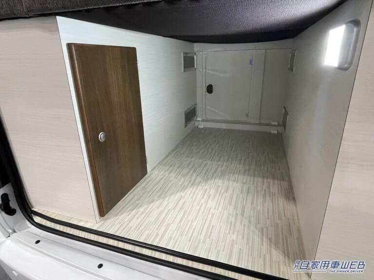 ボックスシートの後ろ側にはクローゼットが設置されている。車内で困りがちな衣類の収納についても問題なしだ。
