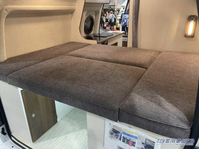 ベッドはクッション性も高く非常に快適。下の収納スペースも十分な空間となっているため、多くの荷物を積載できる。