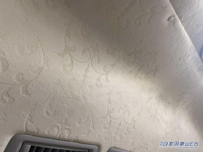 車内照明も個性的なデザインで非常に明るい。また内張の生地も模様が入っており、インテリアの細かなところまでこだわりが見られる。