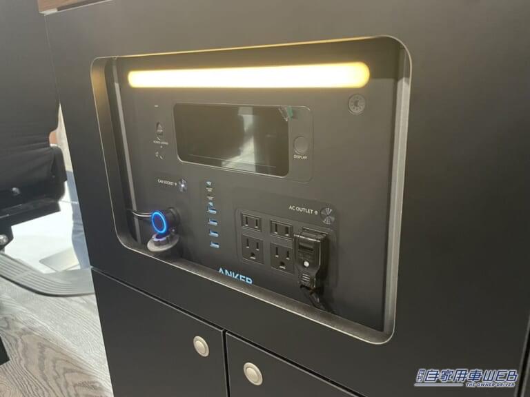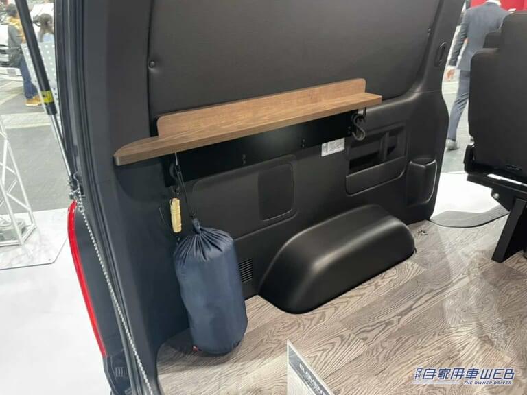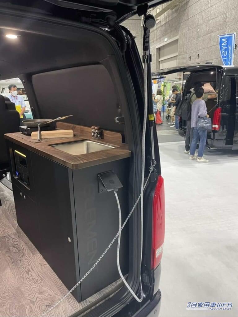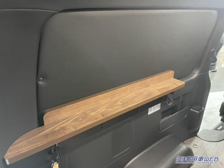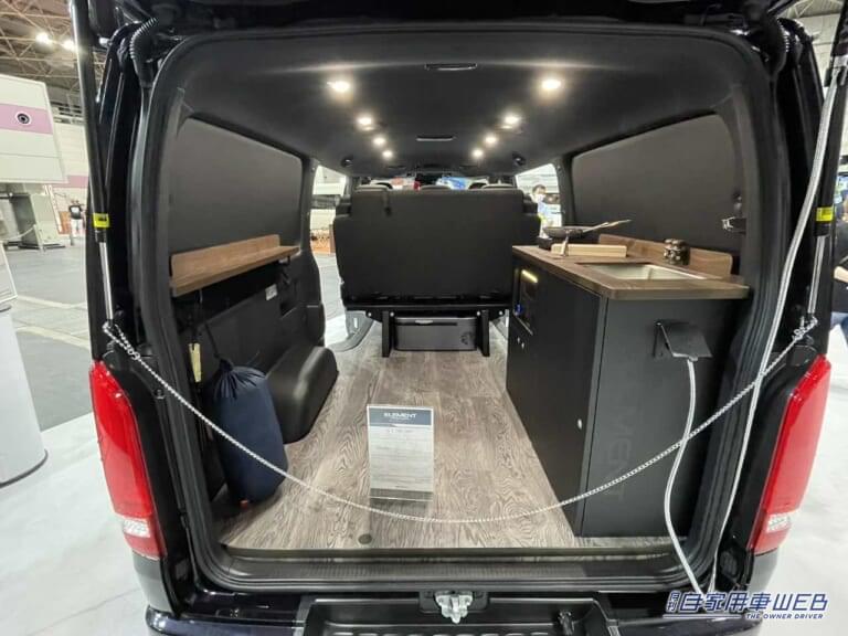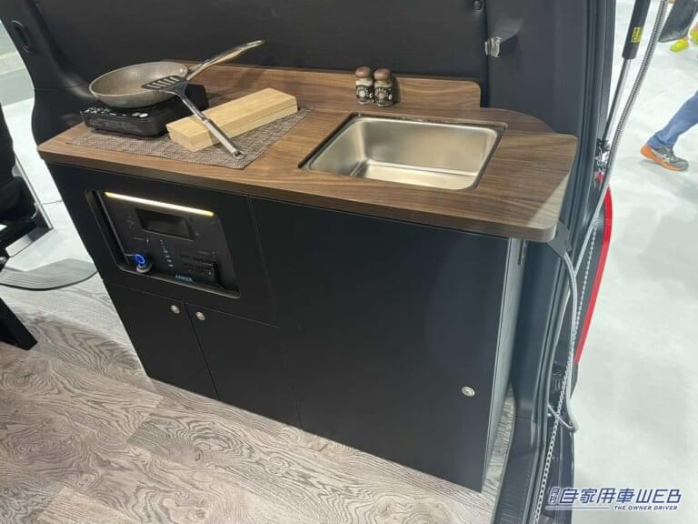 右側にはシンクと電気系統のコントロールパネルが埋め込まれた棚が設置されている。必要装備をコンパクトにまと待っており、車内空間を有効活用できるレイアウトだ。