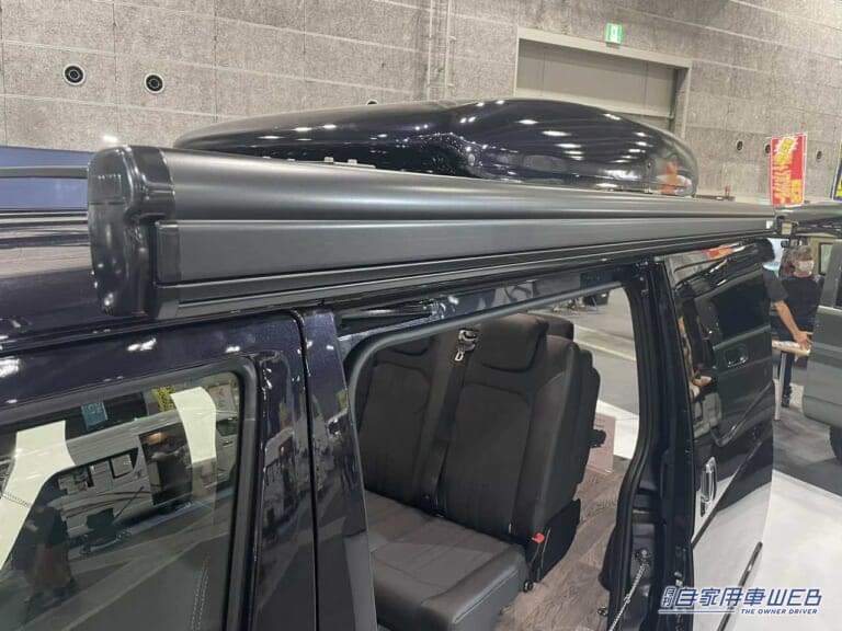 サイドオーニングやルーフコンテナも備えている。アウトドアシーンで役立つこと間違いなしの装備だ。