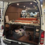 |木材を使った雰囲気抜群の車内がいい感じ! トヨタ ハイエースがベースのキャンパー