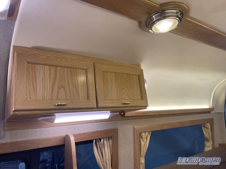 上部に設置された棚やフロアも木目が採用されており、車内は全体的にあたたかい雰囲気となっている。