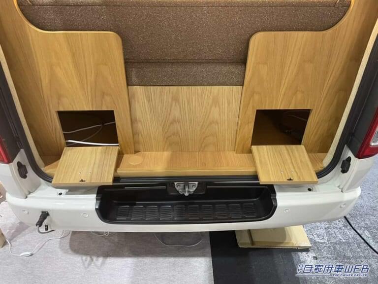 バックドア側から車内にアクセスできるようステップも設けられている。また、シート下の収納スペースにアクセスできる扉も設置されている。