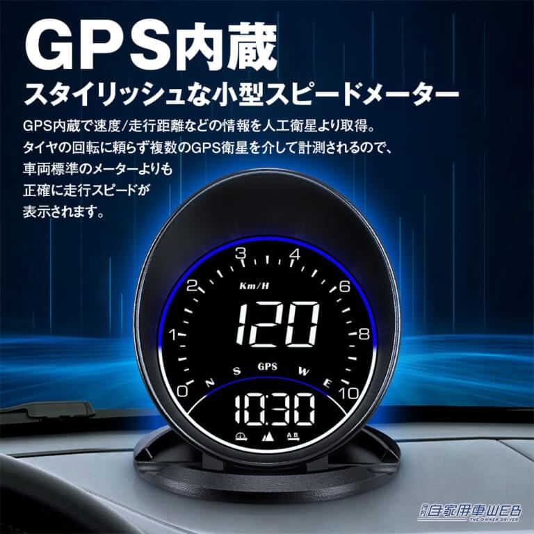 速度や時刻、方位など様々なデータを表示する取付簡単なGPSメーターが「M-GPS-V03/V04」だ。