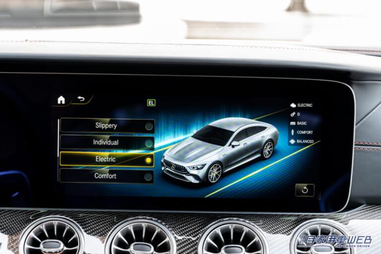 AMG RIDE CONTROL+エアサスペンションは、ダンパーの伸び側と縮み側をそれぞれ制御することが可能で、快適性を高めつつも、スポーティなドライビングダイナミクスの両立を実現している。基本設定はAMGダイナミックセレクトのドライブモードにより選択することが可能で、ボタンを押すだけでハンドリング特性を変更できる。例えば、「Sport+」モードでは きわめてダイナミックな設定、「Comfort」モードでは滑らかなクルージング向けの設定となっている。これに加え、ドライブモードとは独立したチューニングを3段階で調整できる専用のボタンも設けられている。
