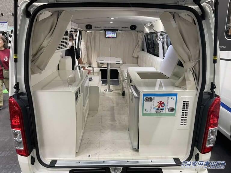 車内は前部が居住スペース、後部がキッチンスペースというレイアウト。