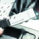 スマホとユニットはBluetoothでワイヤレス接続され、運転姿勢のまま通話ができる。