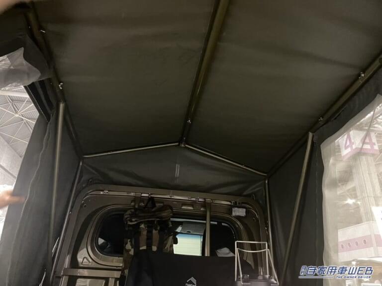軽トラックの荷台にワークキャリアというフレームを設置し、それをテントで覆う形となっている。