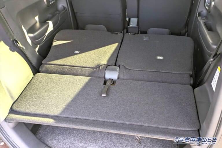 左右の座席を個々に倒すこともできれば、座席を一番前まで動かしてヘッドレストを取り外すことでさらに荷室を広げることもでき、実は商用車顔負けの積載力と応用力を隠し持っているのです。