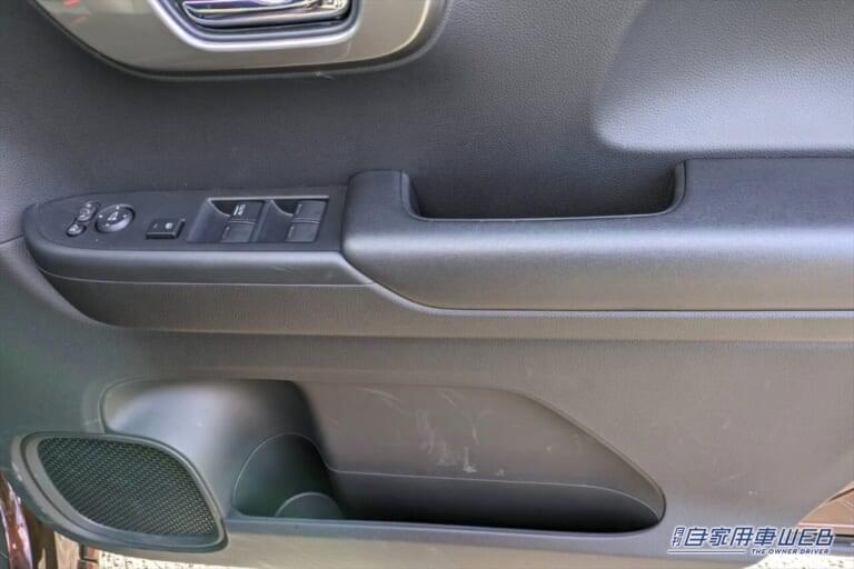 他にも、後部座席下に傘を置ける取り外し式の大型トレーを備えていたり、左右のドアにポケットやボトルホルダーを備えていたりと、スペースがある限り収納を取り付けてくれているような印象を受けました。