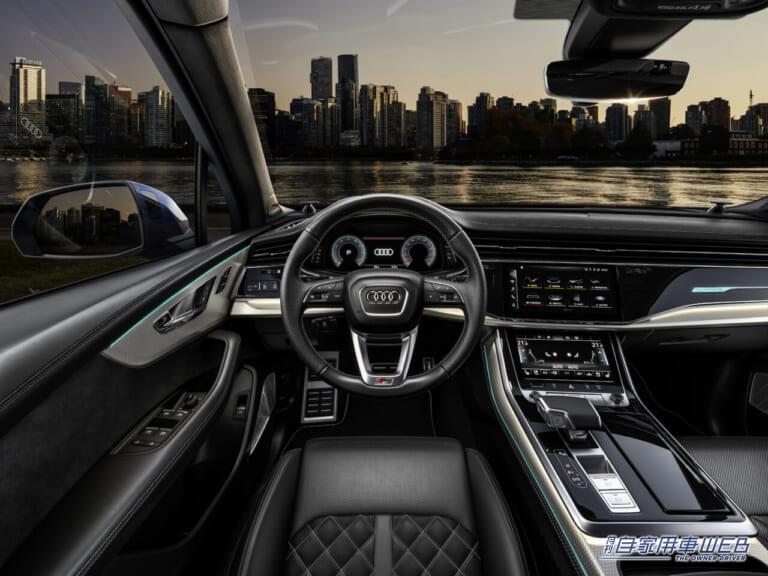 ドイツ本国で発表された新型Q7は、新しいフロントセクションとリヤセクションを備えた新エクステリアデザイン意匠を採用。Q7初となるレーザーハイビーム付きHDマトリクスLEDヘッドライトや、新しいデザインのホイール、ボディカラー、インテリアの装飾インレイ、コントラストステッチが施されたシートに変更されている。