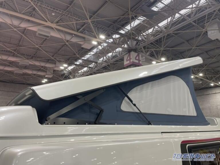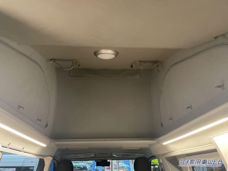 また、ポップアップルーフを展開すれば、天井も高くなり車内で立つことも可能。また底板を敷けば2名分の就寝スペースを確保することができる。