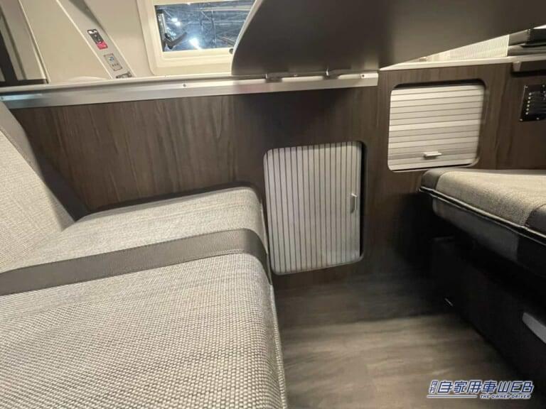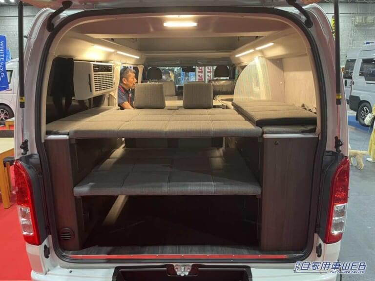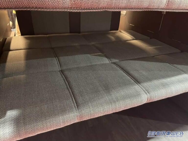 車内後部は上段がベッド、下段とフロアが積載スペースとなっている。