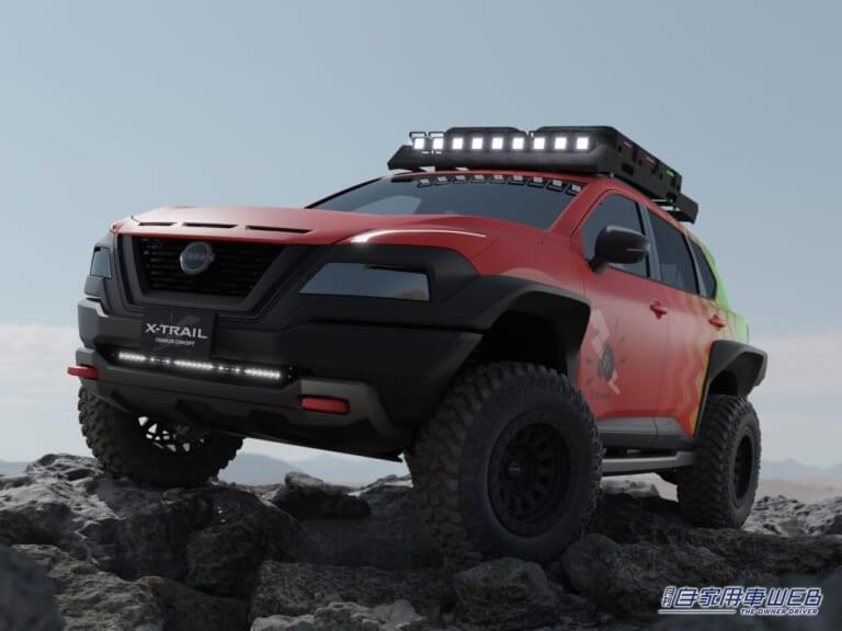 本格SUVの「エクストレイル」をベースに、オフロードテイストとタフギア感をさらに高めたコンセプトカー。エクステリアでは傾斜がきつく険しい地形をクルマにて走破するロッククローリングの世界を表現し、ラゲッジエリアには「エクストレイル」が追求してきた道具感を訴求するアイテムを装備している。(参考出品)