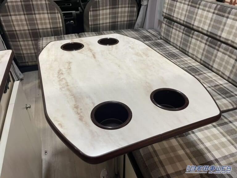 大きすぎないテーブルは、車内での人の動きを妨げない最適なサイズ館となっている。