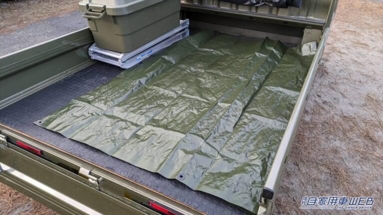 今回の撮影をしたのは2023年12月。キャンプ場の夜の気温は0度近くに下がります。荷台は金属でできているため底冷えで寝られなくなってしまいますし、さらに言えば床面の凹凸が邪魔になってしまいます。