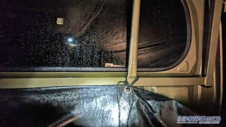 慌てて枕もとに置いていたライトを点灯すると、既に雨が降り始めて時間が経っていたのか、荷台が浸水しつつあるではないですか…!