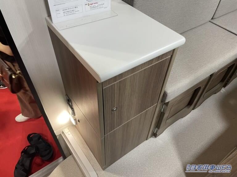 シーのとデッドスペースとなる部分には、サイドテーブル的な小さめの棚が設けられている。スマホなどの充電に便利。