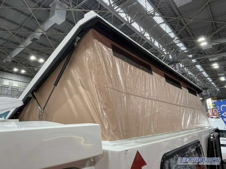 ポップアップルーフを展開すれば天井が高くなり快適。もちろん底板を敷いて就寝スペースとして使うこともできる。