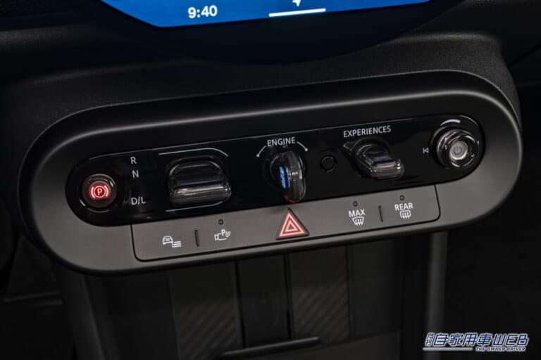 パーキング ブレーキ、ギア セレクター、スタート/ストップ キー、エクスペリエンス モード トグル、ボリューム コントロール)は、トグルバーで入力できるようになっており、センターコンソールには、ワイヤレス充電器を装備している。
