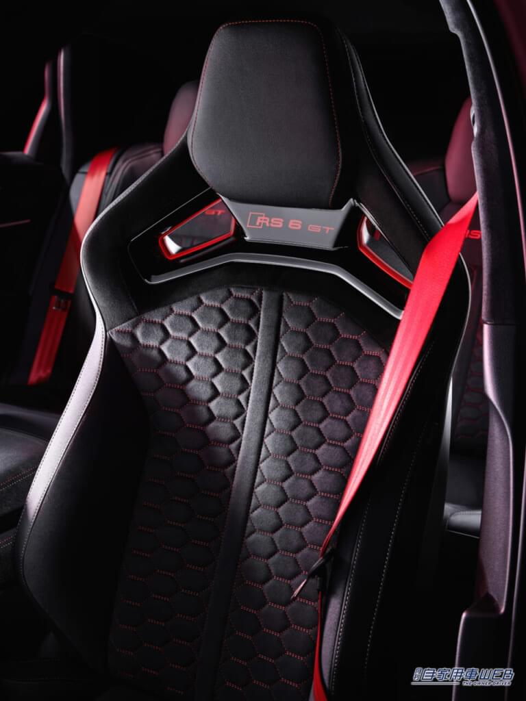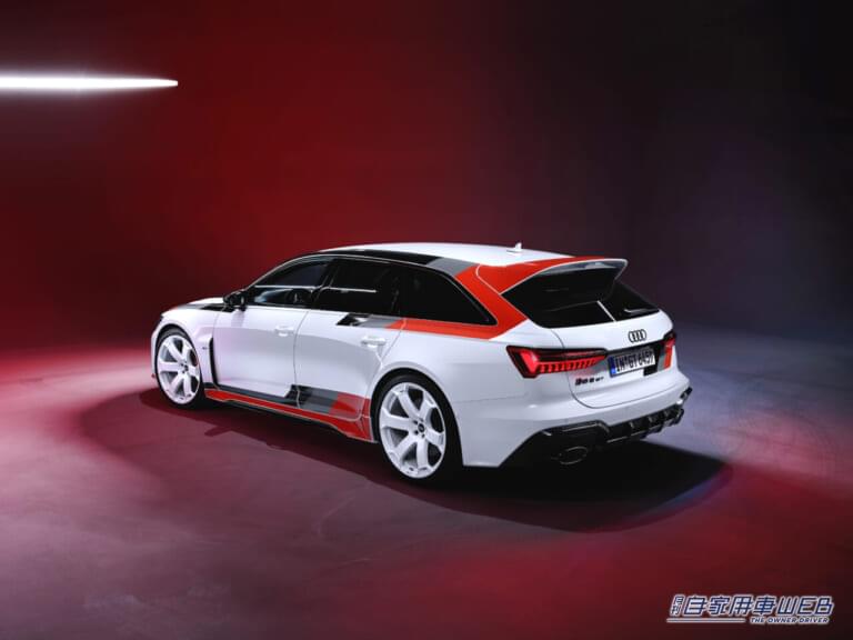 インテリアには、高品質なバケットシートや斬新なカラーコンビネーションが採用され、センターコンソールにはエクスクルーシブなアクセントとして、シリアルナンバー(製造番号)が刻印されている。Audi RS 6 Avant GT専用のライトウェイトアジャスタブルコイルオーバーサスペンションと、このモデル専用のリヤアクスルのquattroスポーツディファレンシャルが、ドライブエクスペリエンスを向上させてる。