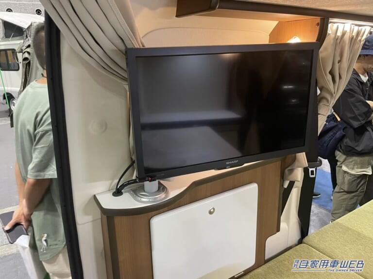左の棚には可動式のテレビが設置されている。内向き外向きどちらにも対応する。