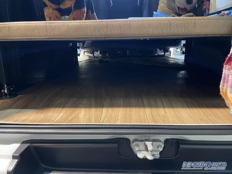 フラット面は8分割できる。積載するケージやペットバギーのサイズに応じてフラットスペースのサイズを調整することが可能となっている。また、床面はペット専用のクッションフロアとなっている。通常より厚めの生地で、愛犬が脚を痛めないための工夫だ。