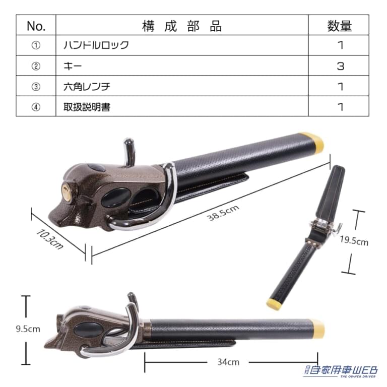 スポーク幅7cmまでのハンドルに取り付け可能。ロックが不足している場合は、六角レンチを使用して調整することができ、車と接触する部分(ロックフォーム層、ポリッシュロッククラスプ、レザーハンドル)はすべて緩衝設計を採用しており、愛車に傷をつけない。