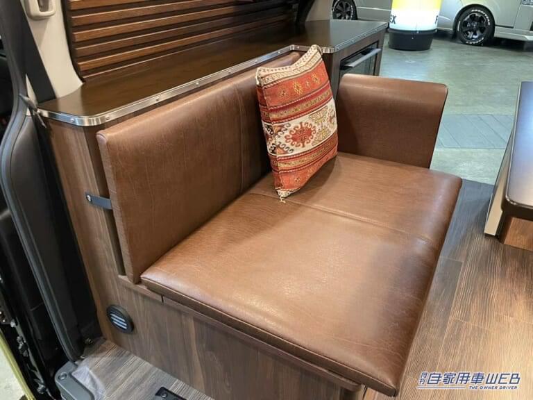 車内はダーク系の木目柄とレザー調のシートがうまく調和した落ち着きある雰囲気となっている。