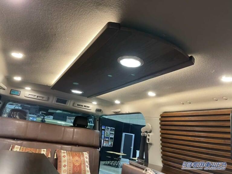 天井には照明が多数取り付けられており、インテリアに落ち着いた色が多い車内でも、非常に明るくなっている。