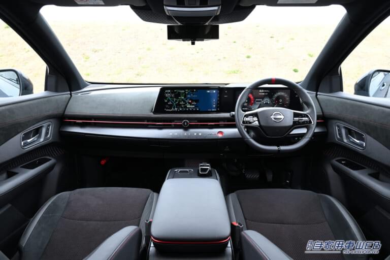 パワートレーンは駆動用電池も含めてベース車と同型だが、NISMOモデル専用の制御プログラムを採用することで、システム最高出力は290kWから320kWに向上している。さらにドライブモード設定も専用設定で、電動ならではのレスポンスの良さがより実感できるNISMOモードも追加された。