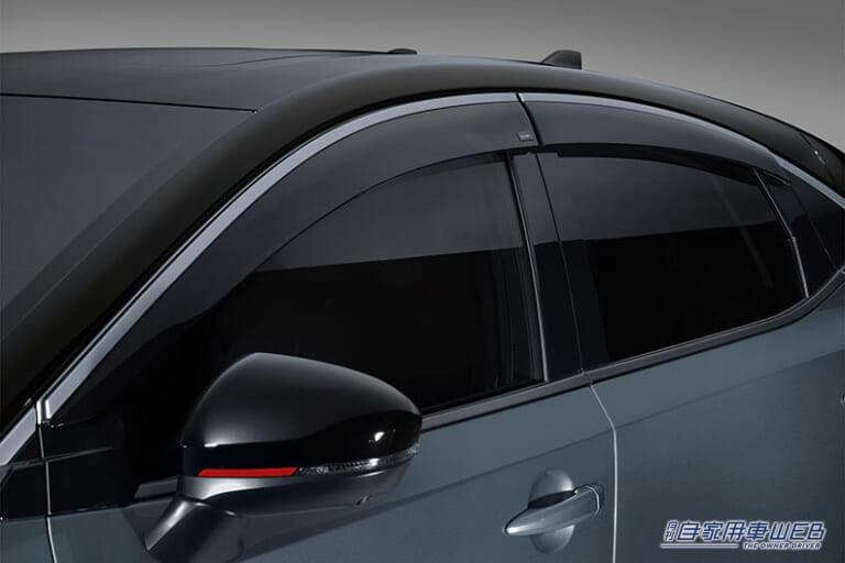 小雨時にもウインドウガラスを少し開けて車内の換気ができるなど、実用性の高いプラスチックバイザー。さりげなく配したNISMOエンブレムがクールな印象を演出する。