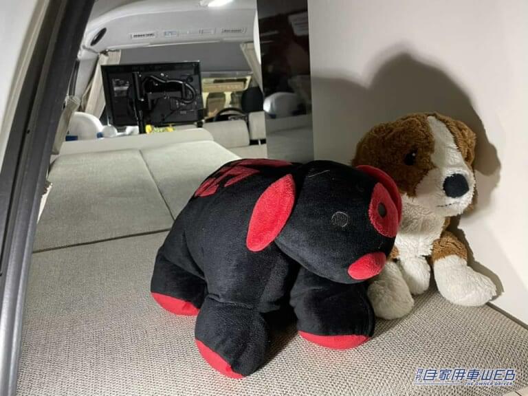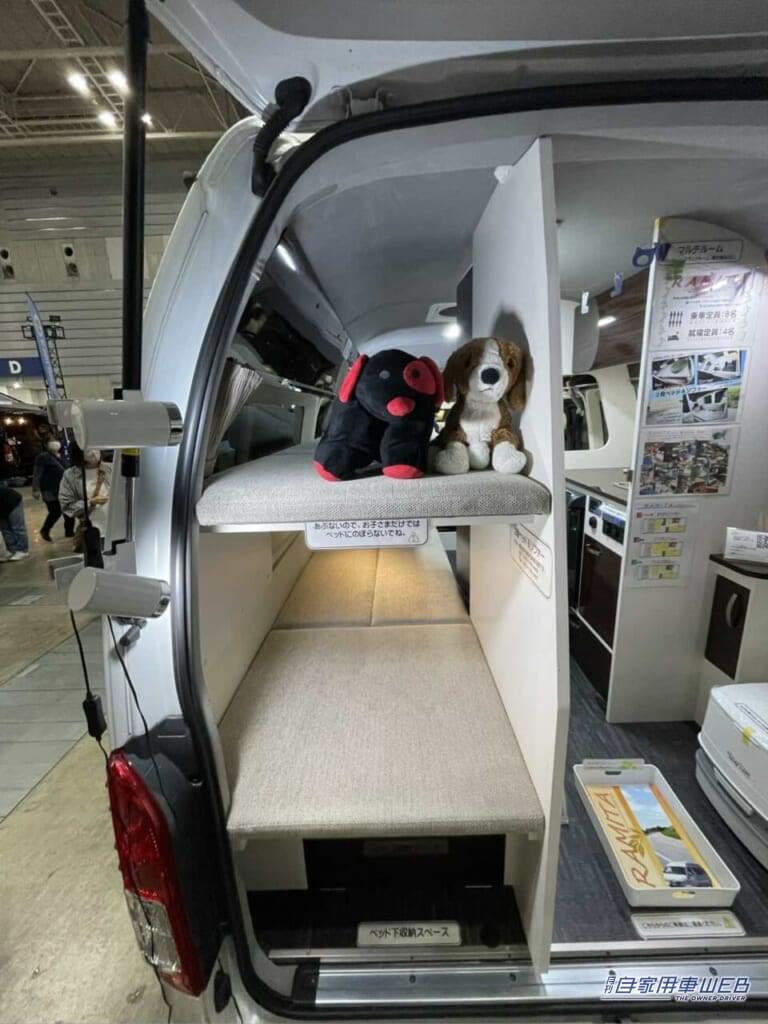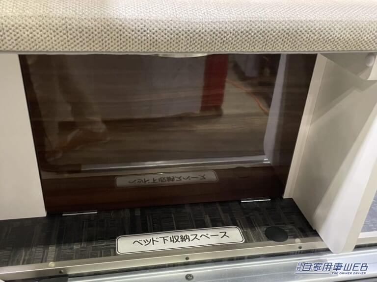 また、ベッドの下には収納スペースも備えているので、車外から取り出したい物はこちらに入れておくといい。