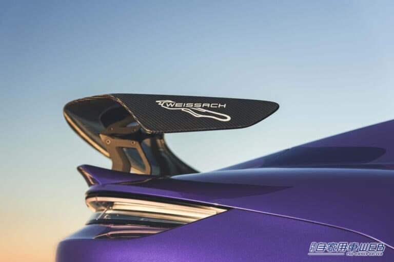 ヴァイザッハパッケージは、サーキット走行に必要のない装備をすべて取り外すことでタイカンターボGTと比較して約70kgの軽量化を実現。運転席および助手席シートシェルの後部は、収納コンパートメントを備えたテーラーメイド高品質軽量カーボンクラッディングを通常のリアシートシステムの代わりに装備。メーターパネルに通常装備されるスポーツクロノパッケージのアナログ時計や、フットマットとトランクマットは取り外され、断熱材の使用量も減らされている。さらに、特別な防音断熱ガラスとサウンドパッケージプラスも軽量化に寄与し、リアスピーカーなしのサウンドパッケージプラスが、BOSE®サラウンドサウンドシステムの代わりに装備される。