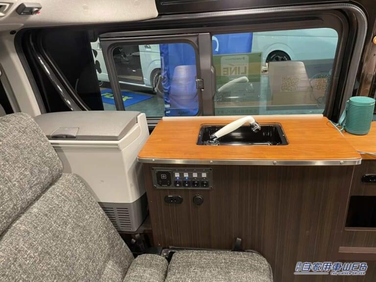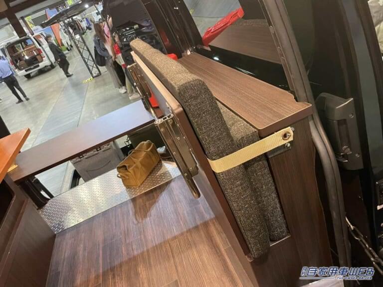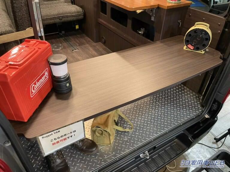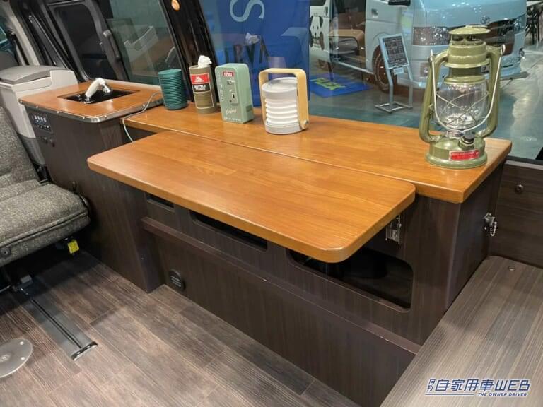 最後部には長めのテーブルが設置されている。車内はもちろん、車外で活動する際にも便利な高さなので、デイキャンプなどの際には活躍してくれる。